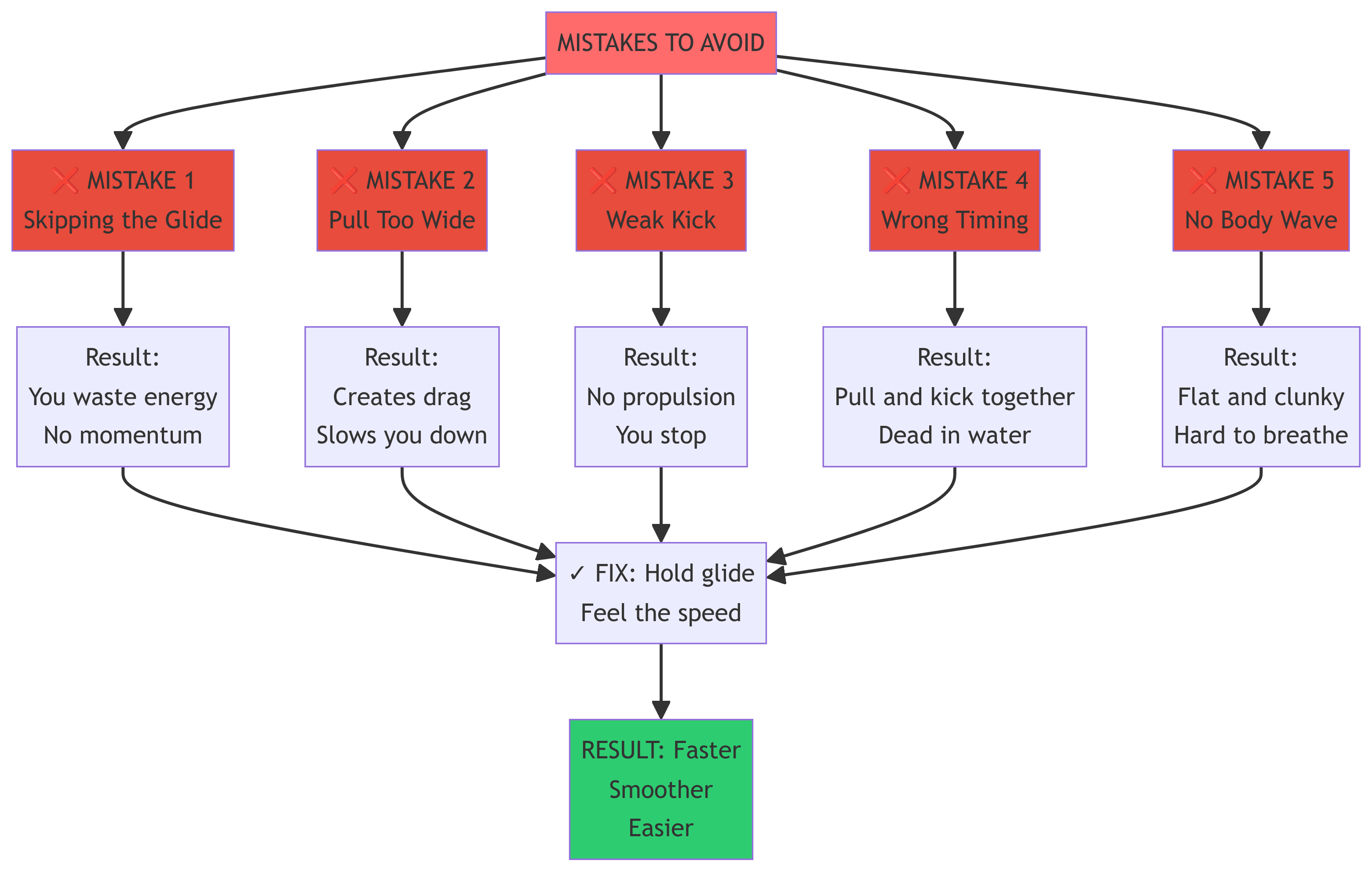 𝗧𝗵𝗲 𝗦𝗼𝗹𝘂𝘁𝗶𝗼𝗻: The sequence is everything. Memorize this mantra: “Pull, Breathe, Kick, Glide.”